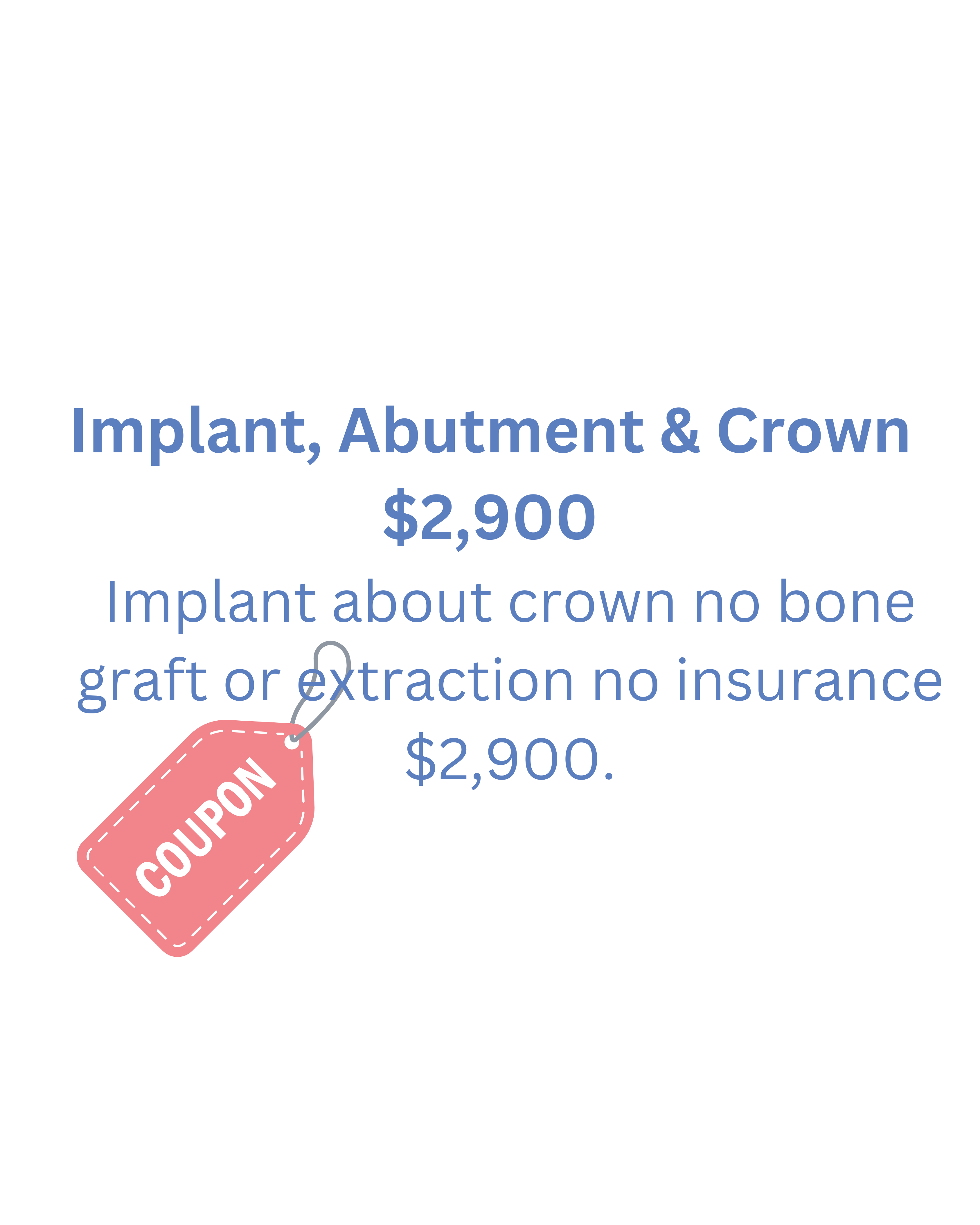Implant about crown no bone graft or extraction no insurance $2,900.